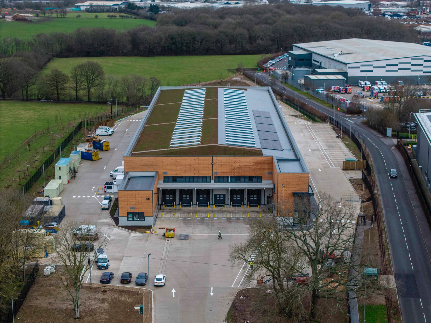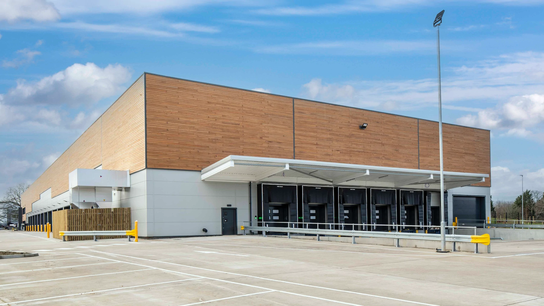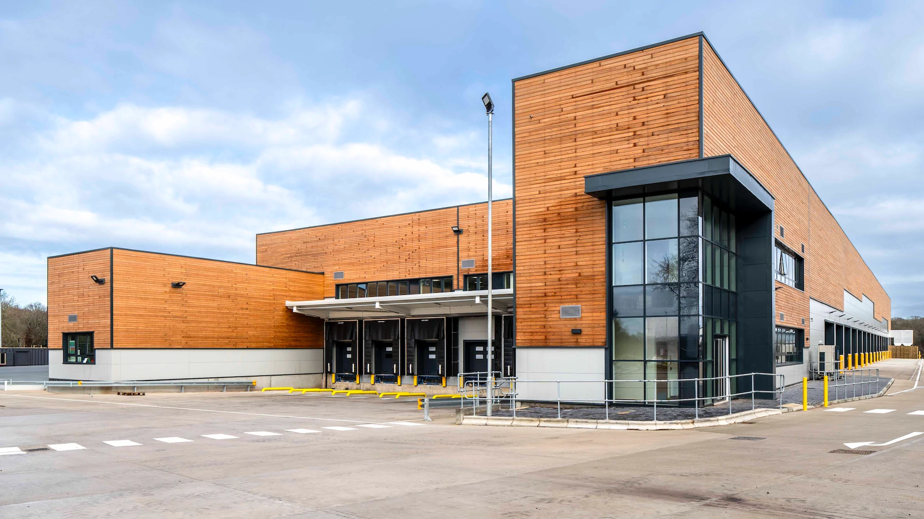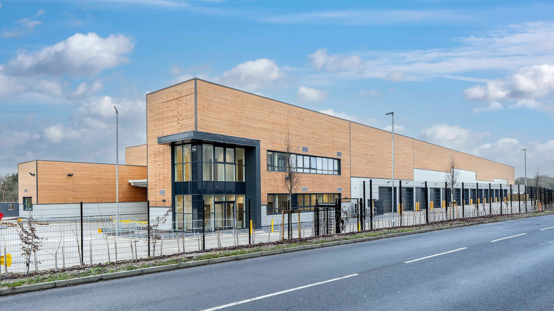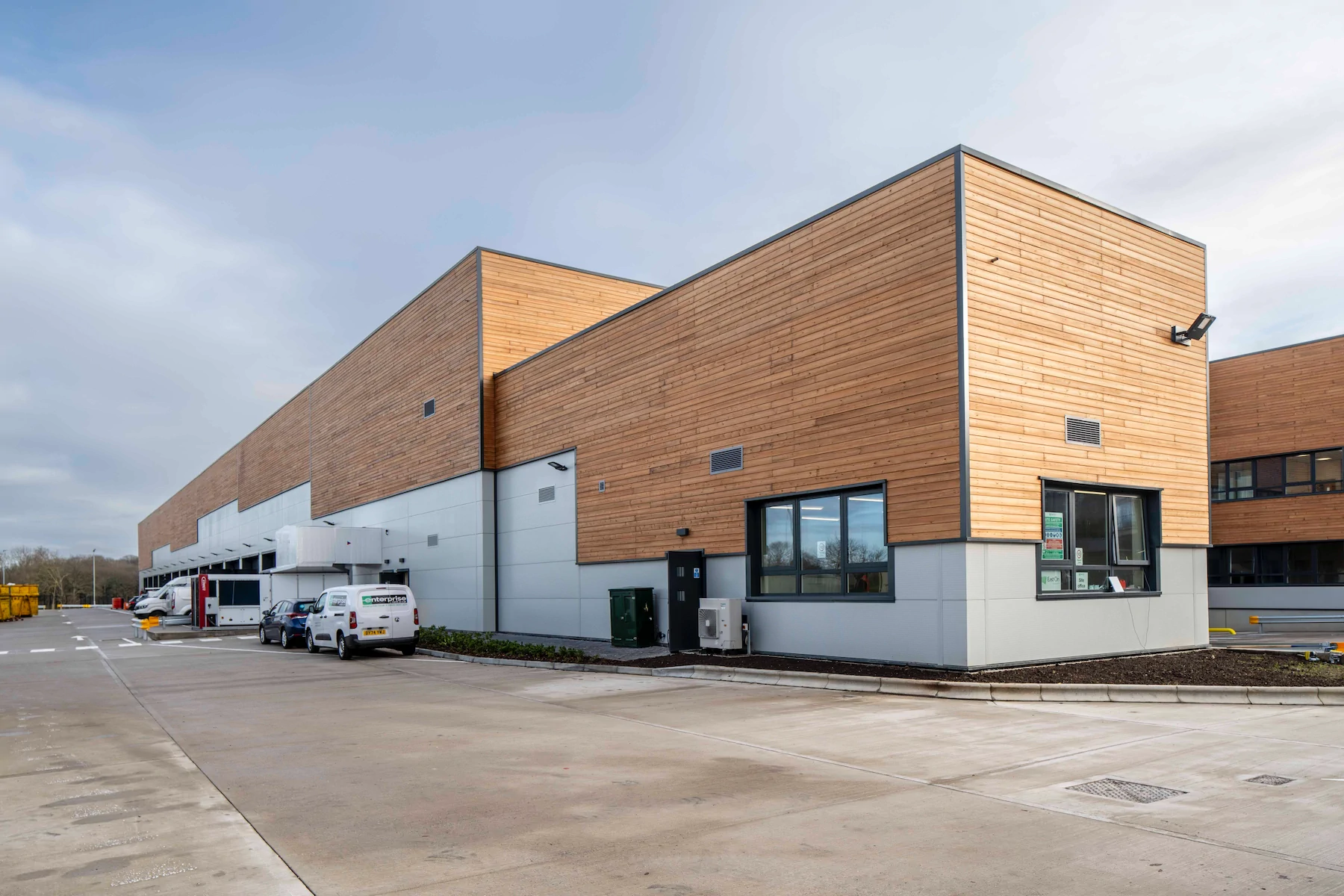 The cross docked building with two story offices will total 63,798 ft2. The long thin structure will have 13 dock level doors as well as level access doors to serve the delivery vans. There is parking for 125 cars, 102 vans and 12 HGVs. Two new entrances would be created off Hydehurst Lane to serve the new warehouse.