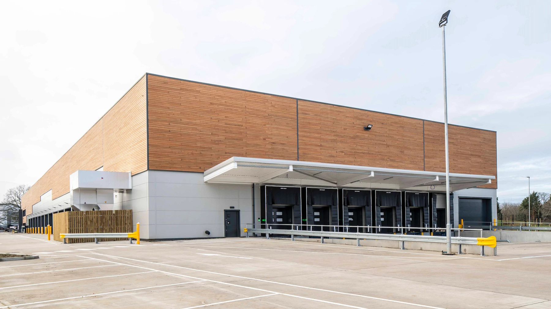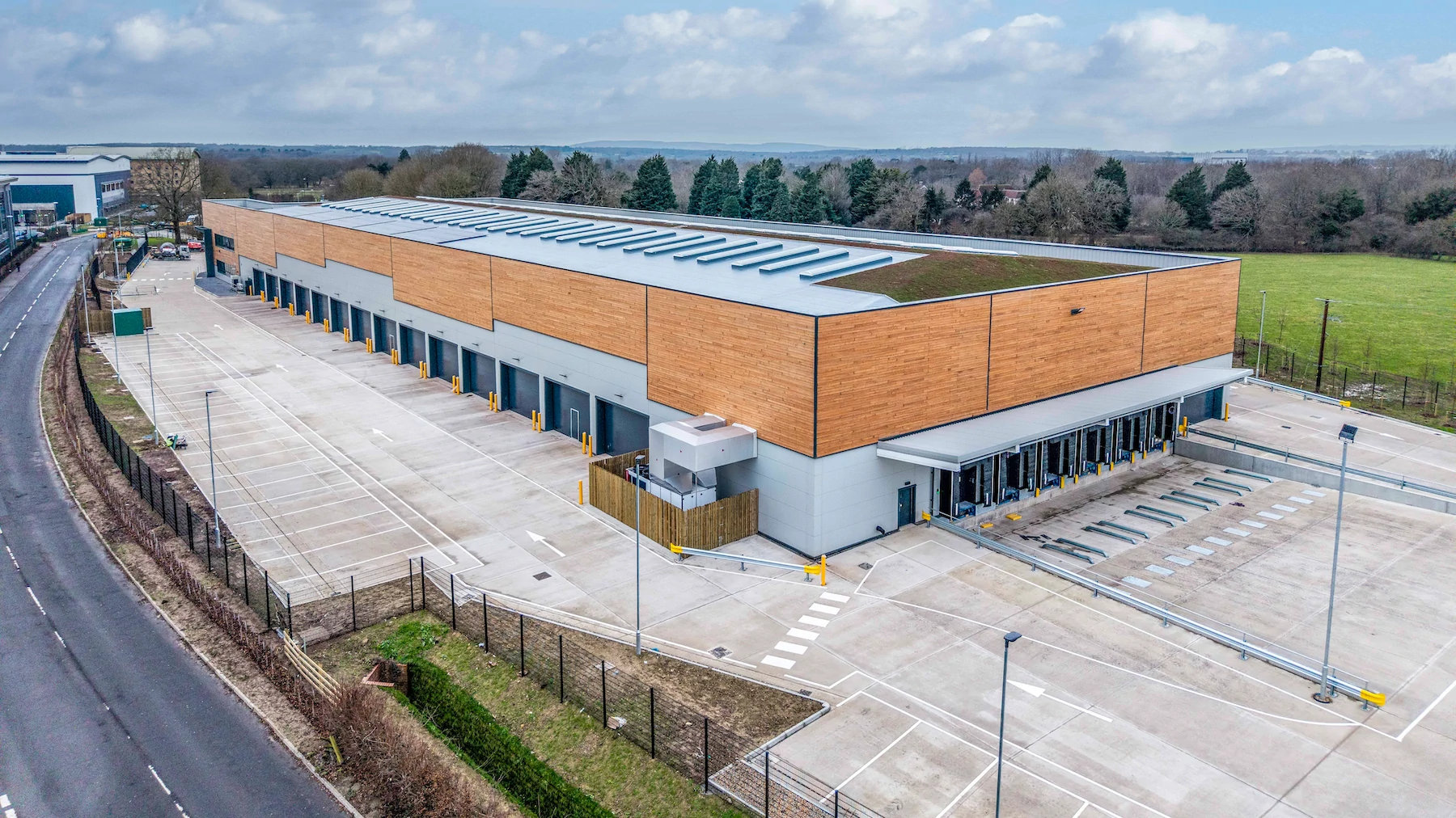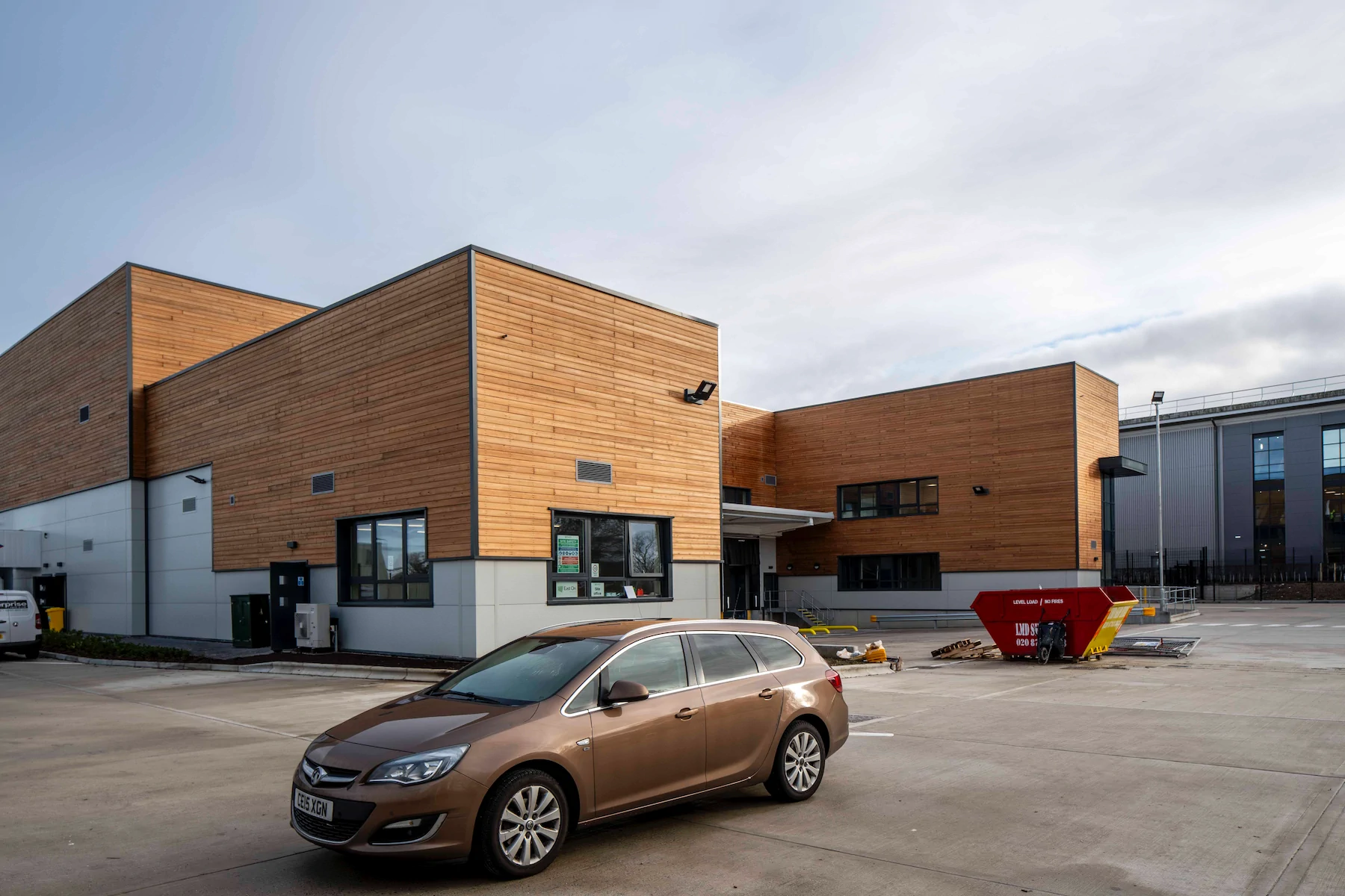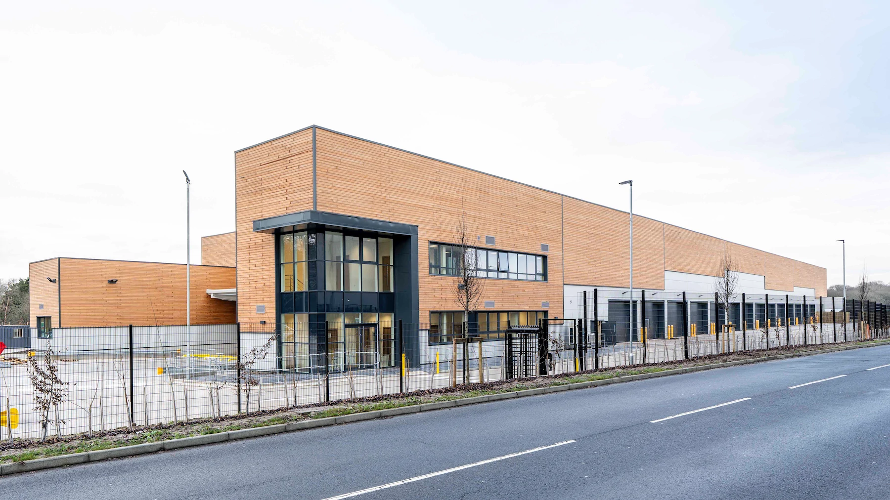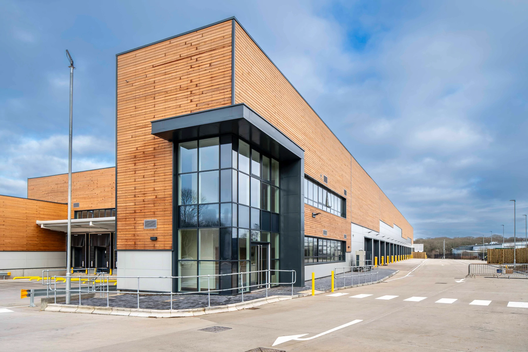 The cross docked building with two story offices will total 63,798 ft2. The long thin structure will have 13 dock level doors as well as level access doors to serve the delivery vans. There is parking for 125 cars, 102 vans and 12 HGVs. Two new entrances would be created off Hydehurst Lane to serve the new warehouse.