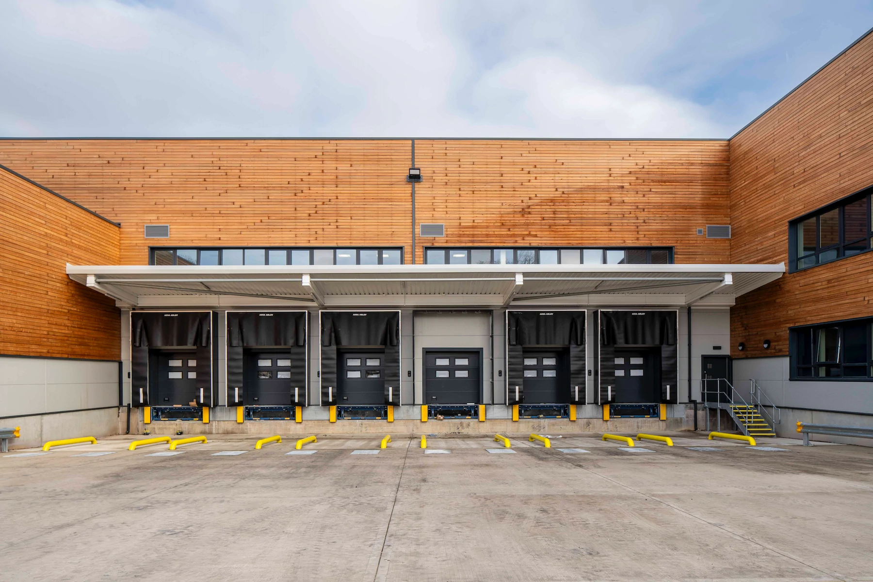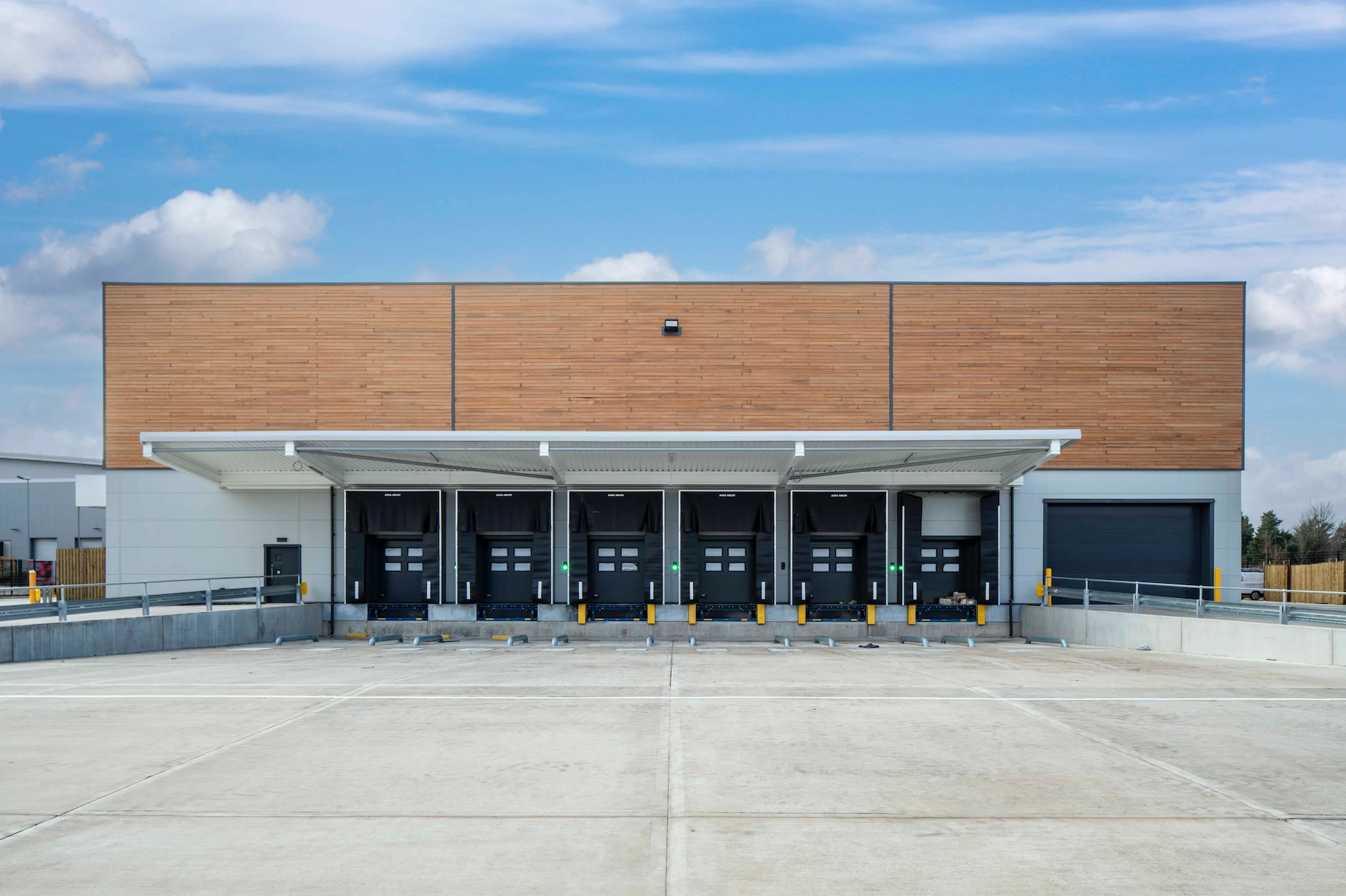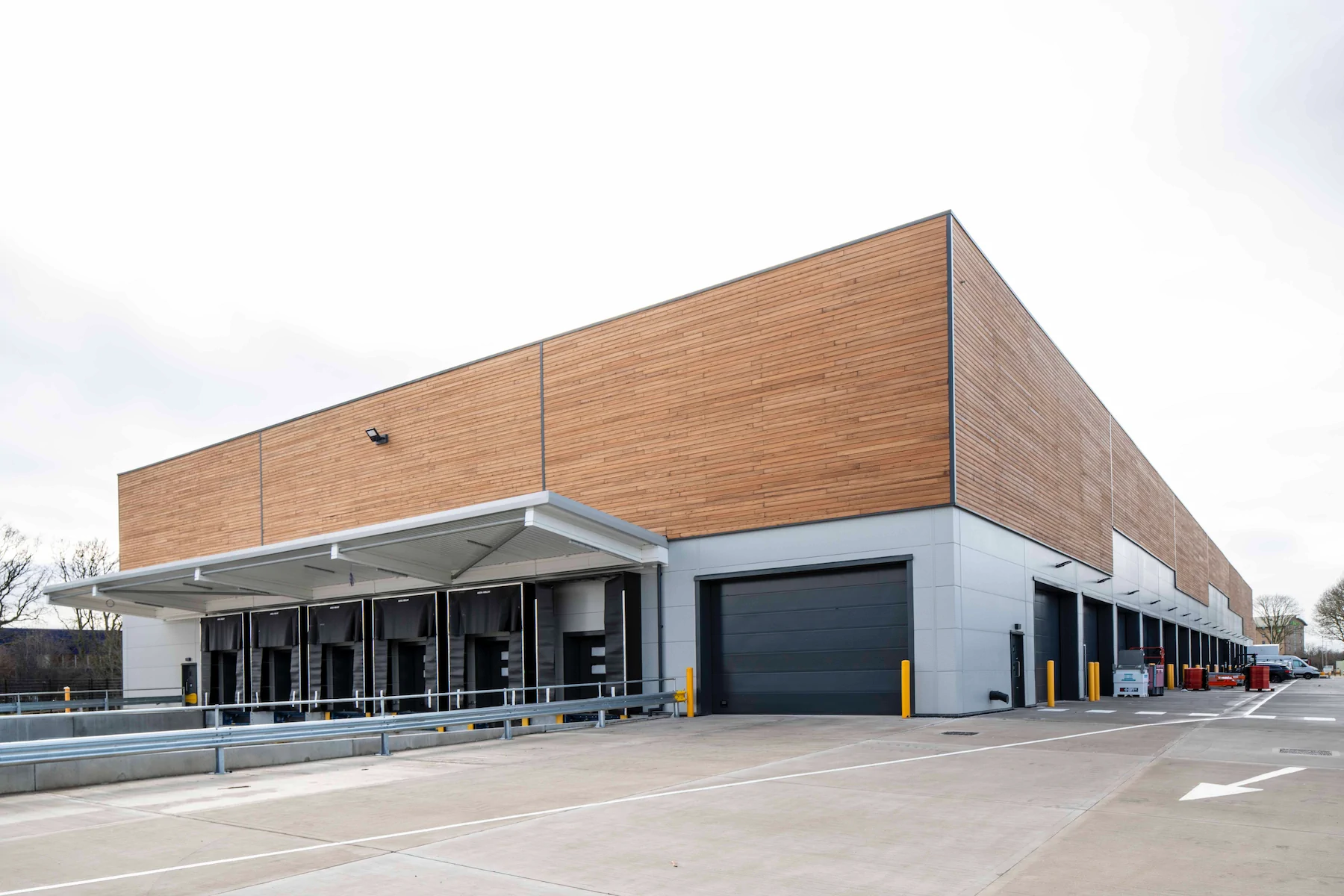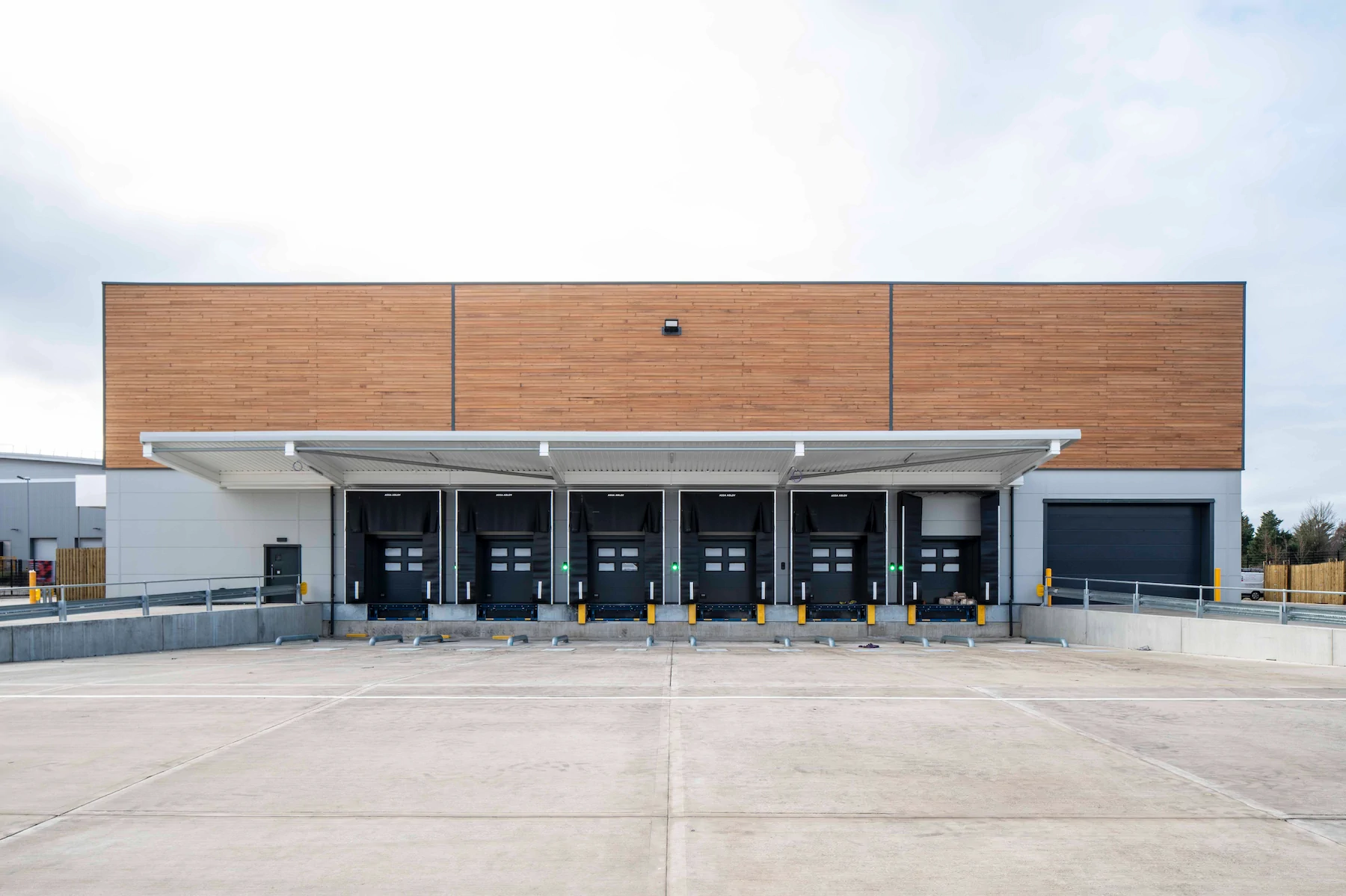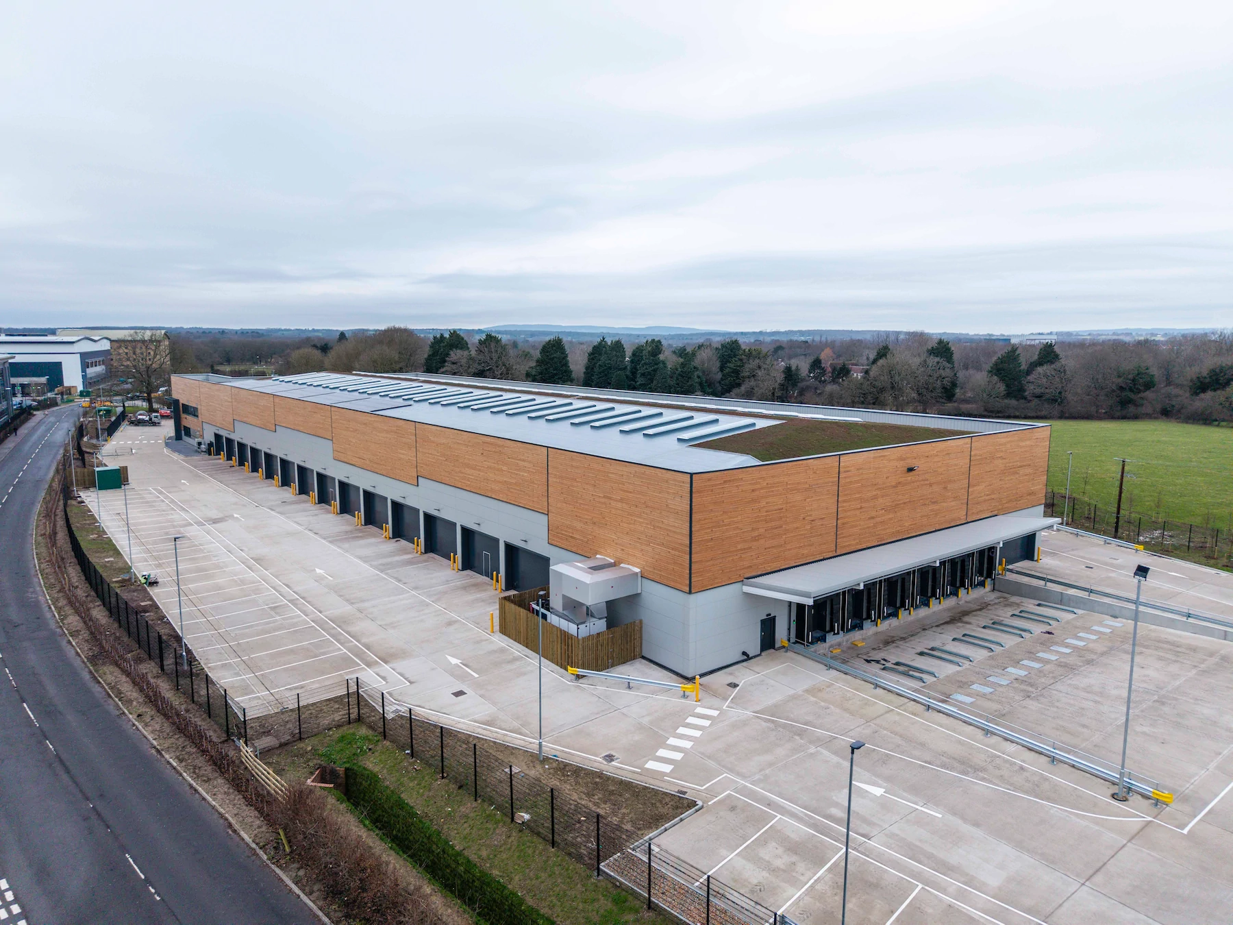 The cross docked building with two story offices will total 63,798 ft2. The long thin structure will have 13 dock level doors as well as level access doors to serve the delivery vans. There is parking for 125 cars, 102 vans and 12 HGVs. Two new entrances would be created off Hydehurst Lane to serve the new warehouse.